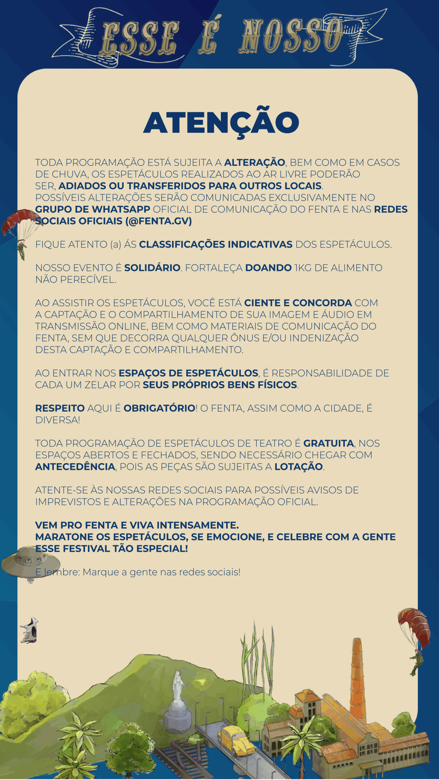 Oferecendo à população uma experiência cultural rica e acessível. A gratuidade do festival é um claro reflexo dessa intenção, permitindo que pessoas de todas as classes sociais tenham acesso ao teatro. A capacidade do FENTA de se expandir para os bairros da cidade amplifica ainda mais seu impacto, garantindo que todos possam vivenciar o festival, independentemente de sua localização